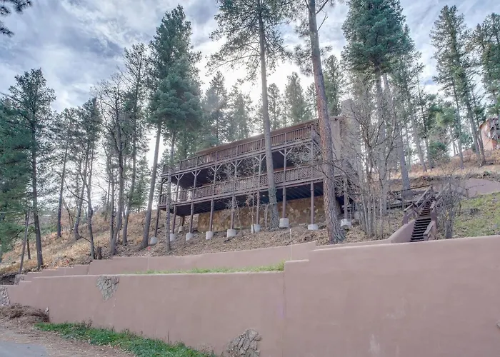 Offering a Jacuzzi for a relaxing experience, Ruidoso Cabin Retreat With Multi-Level Deck Villa is located 10 minutes' drive from Noisy Water Winery.
